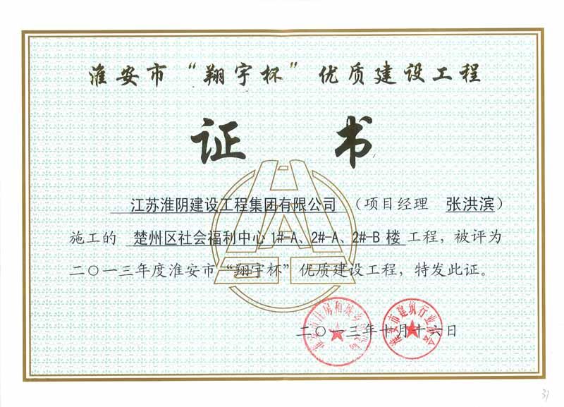 2013年市翔宇杯楚州区社会福利中心1#-A2#-2#-B工程(张洪