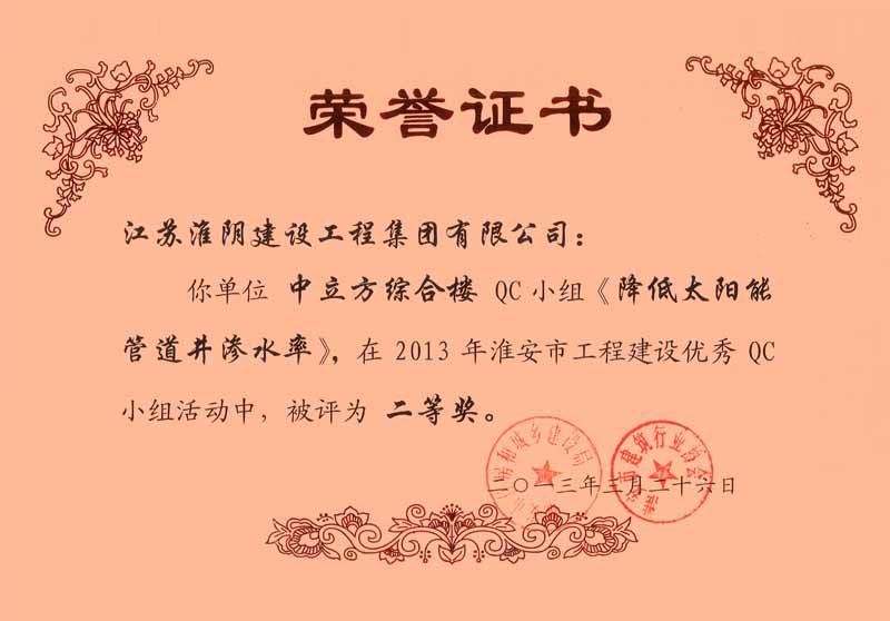 2013年市工程建设优秀QC二等奖 中立方综合楼-降低太阳能