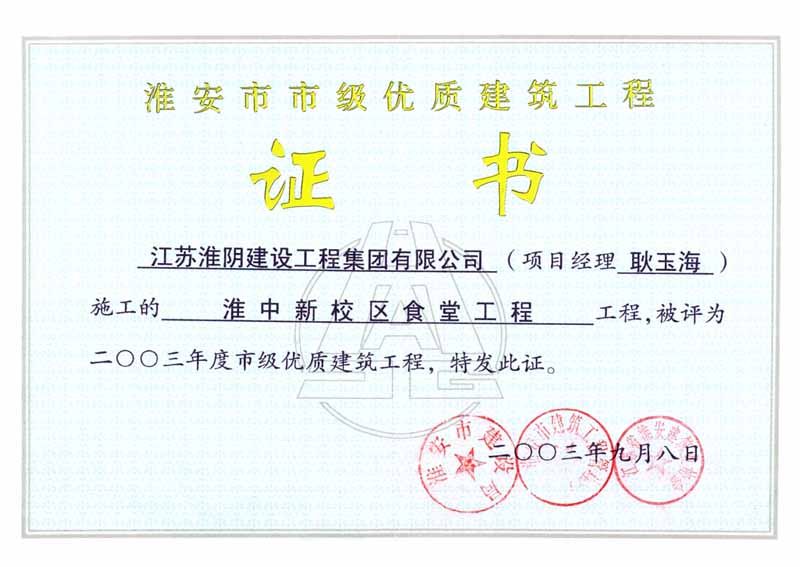 2003年市级优质工程淮中新校区食堂工程(耿玉海)