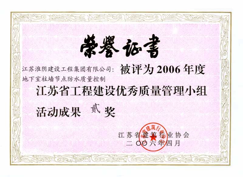 2006年省工程建设优秀质量管理小组活动成果贰等奖-地下室柱墙节点防水质量控制