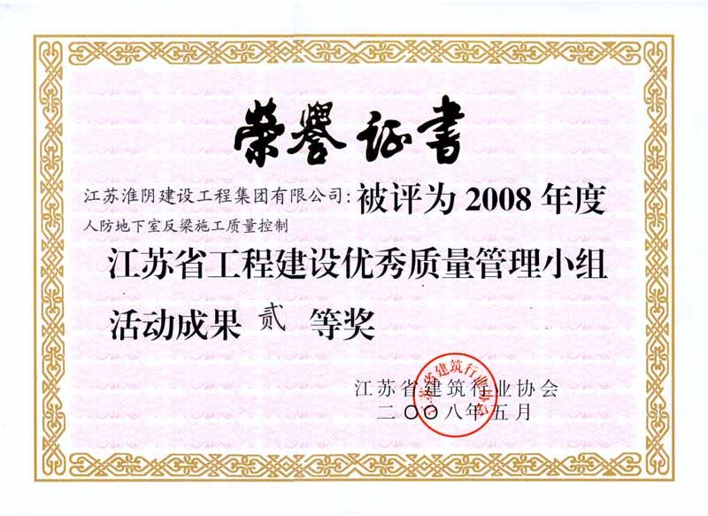 2008年省工程建设优秀质量管理小组活动成果贰等奖-人防地下室反梁施工质量控制