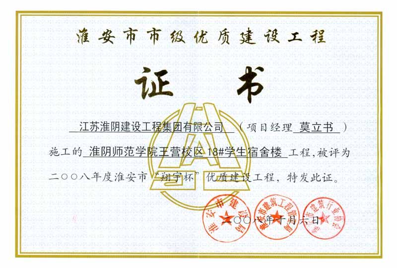 2008年市翔宇杯淮阴师范学院王营校区18#学生宿舍楼-莫立书