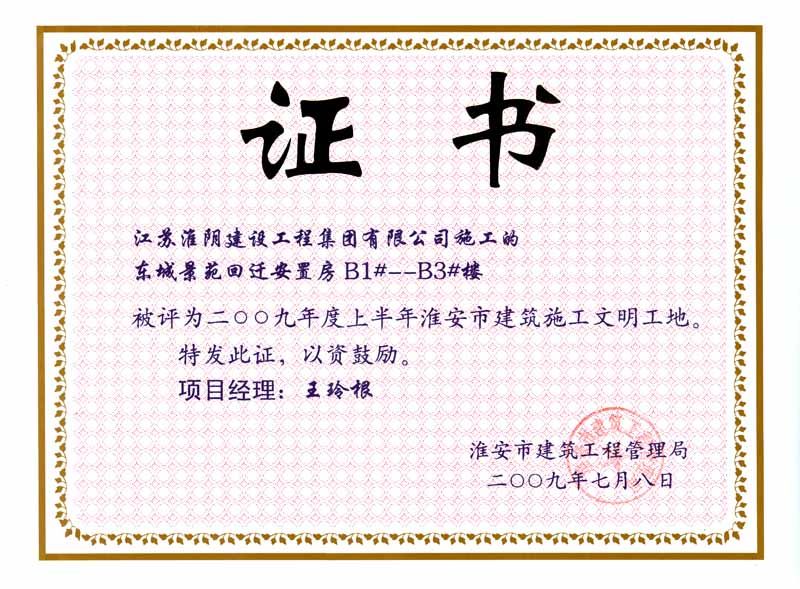 2009年市文明工地东城景苑回迁安置房B1#-3#楼-王玲根