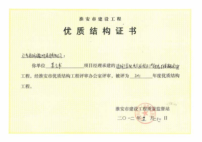 2012年市优质结构淮阴工学院北京路校区1#学生宿舍楼翻建工程-莫立书