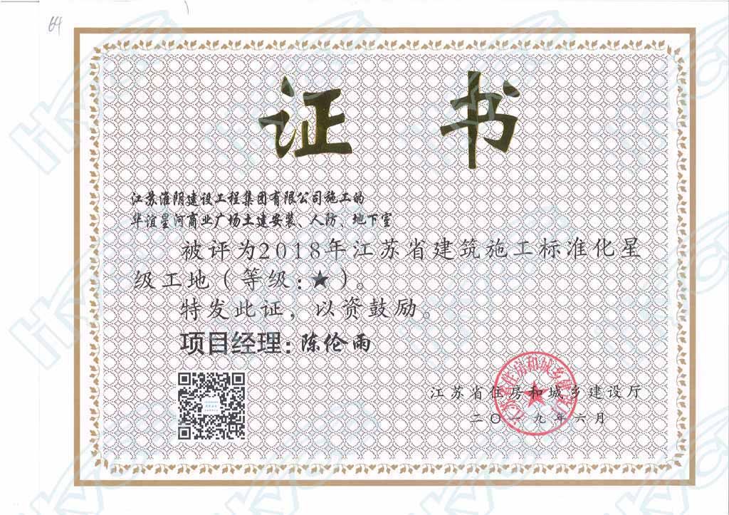 2018年度江苏省建筑施工标准化★星级工地-华谊星河