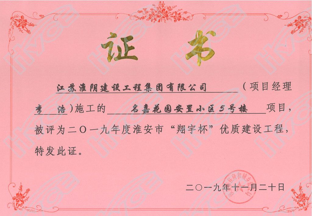淮安市“翔宇杯”优质建设工程-名嘉花园安置小区5号楼