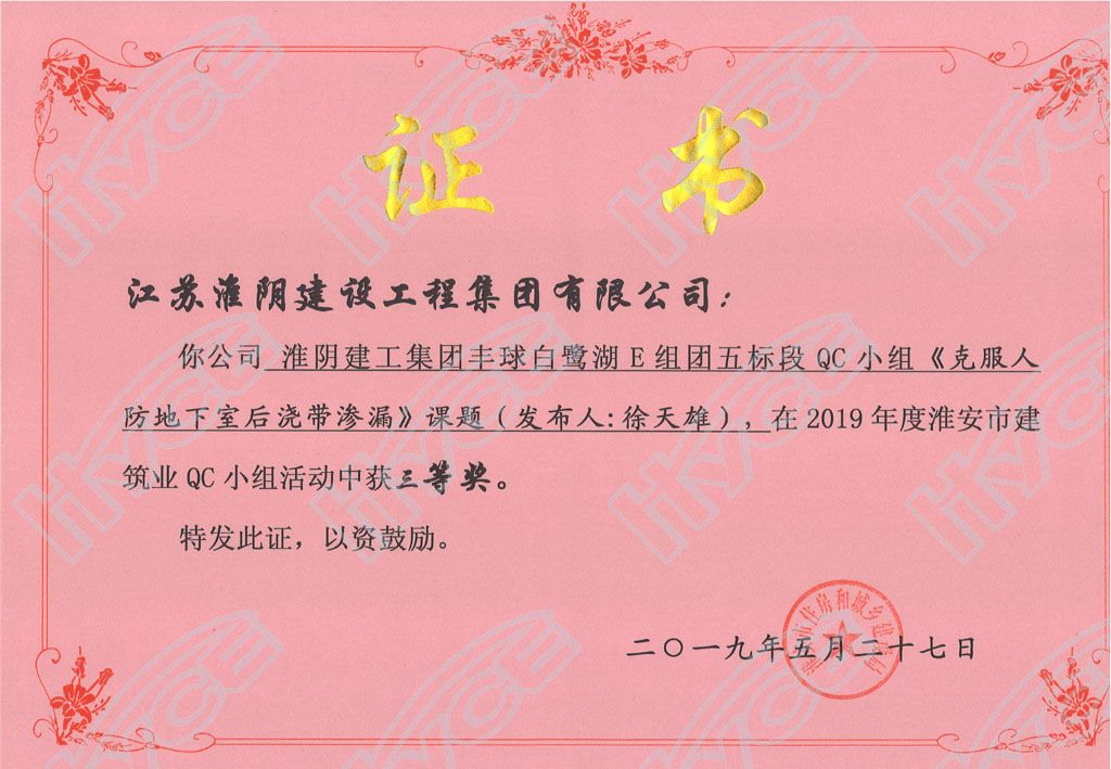 淮安市建筑业QC小组三等奖