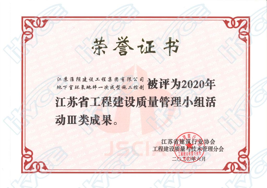 江苏省工程建设质量管理小组活动III类成果