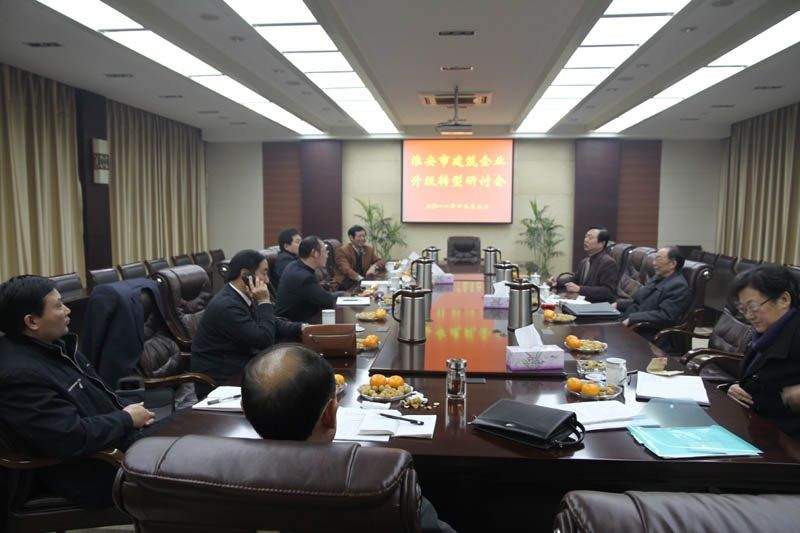 2011年12月2日,淮安市建筑企业升级转型研讨会在集团三楼会议室召开。市建筑行业协会顾维忠会长、黄善文秘书长以及市重点建筑企业负责人参加了会议。会上大家认真学习了建筑业“十二五“规划精神,对淮安市建筑企业如何转型升级进行了研讨。