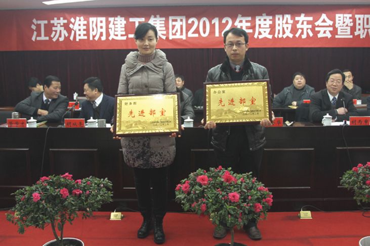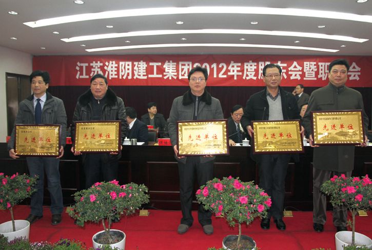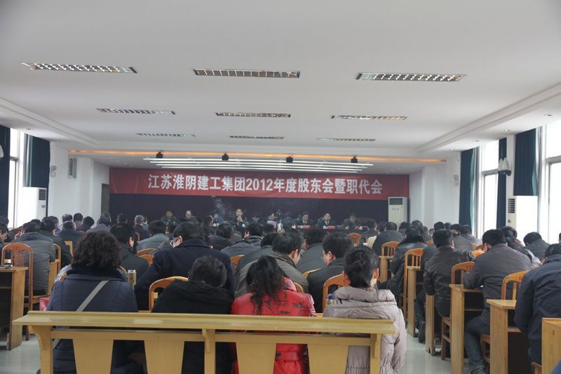 在全国两会召开前夕的2月29日,集团召开了2012年度股东会暨职代会。会议由胡从亮总经理主持,许金华董事长作了题为《抢抓发展机遇 树立争先意识 为实现集团又好又快发展而努力奋斗》的工作报告,傅强主席作了监事会工作报告。市建工局副局长侯继海应邀参会,并讲话。会议还对2011年度先进单位、先进部室、先进集体及先进个人、优秀科技工作者、优秀项目经理进行了表彰、颁奖。安装公司、钢结构分公司做了经验交流,各分、子公司向总经理递交了2012年度目标责任合同和安全生产责任状。