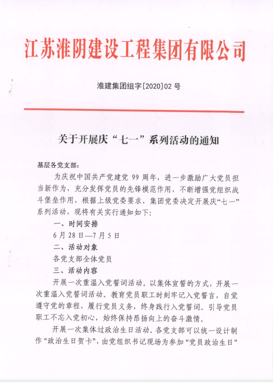 集团关于开展庆“七一”系列活动的通知